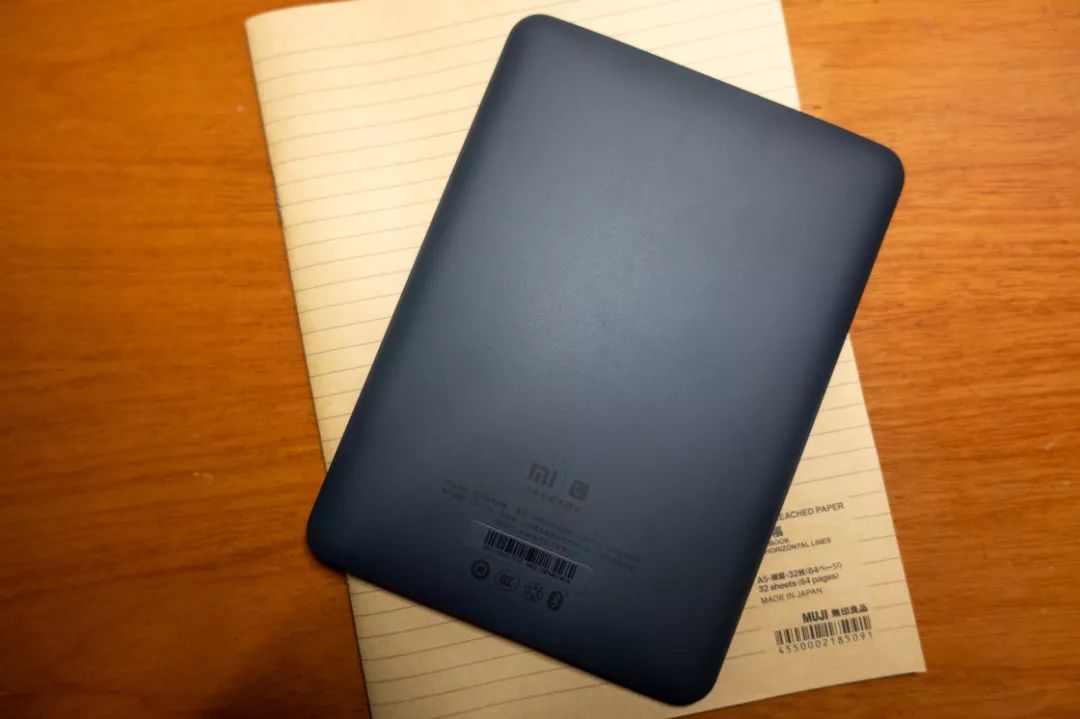 背面采用的是深灰色的亲肤防指纹涂层,摸起来手感很好,而且不像 Kindle PaperWhite 的亲肤涂层那么容易留下指纹,但是问题是有点滑,单手握持时如果用大拇指去翻页就很容易脱手,这也就导致了前面提到的小米多看电纸书的单手翻页体验不如两款 Kindle。
