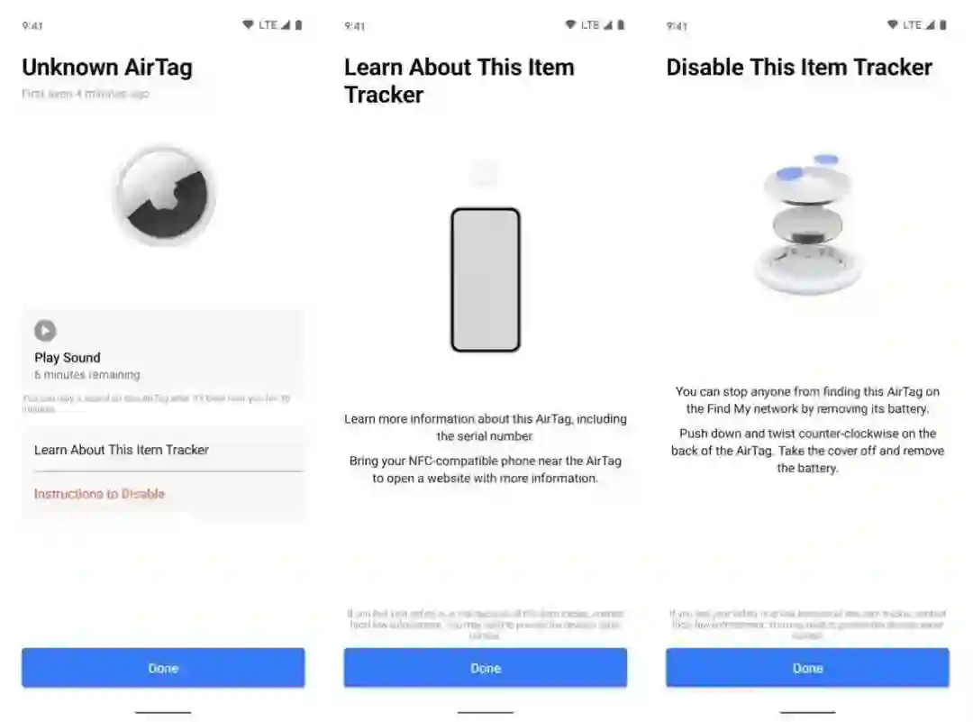 根据这款应用的描述,Tracker Detect会寻找与所有者分开、与查找网络兼容的物品追踪器,因此它会定位AirTag和其他支持查找网络的设备。