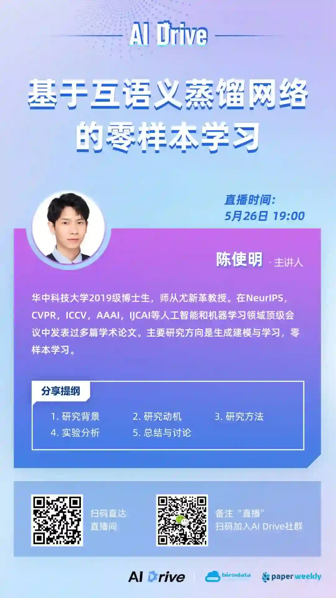 。对本期主题感兴趣的小伙伴,5 月 26 日(本周四)晚 7 点,我们准时相约 PaperWeekly 直播间。