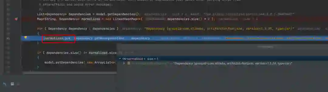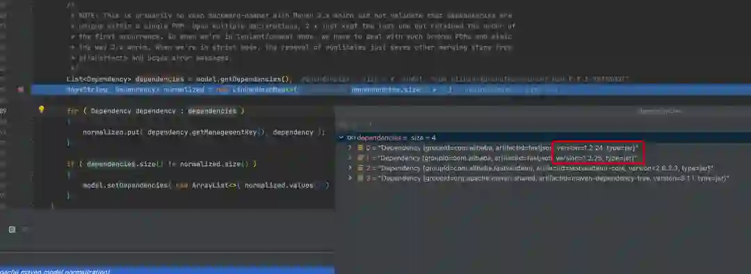 当循环进行处理到1.2.25的时候,依然进行对normalized这个map进行put操作导致了 key值相同的情况下的覆盖。