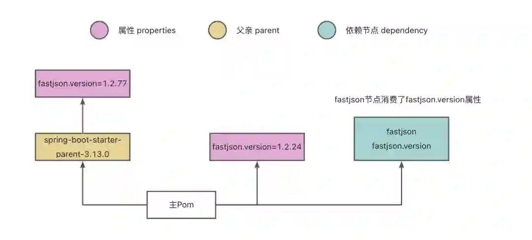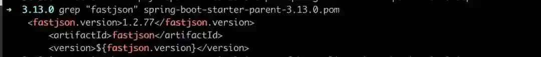 父亲是spring-boot-starter-parent-3.13.0。父亲里的<fastjson.version>是1.2.77。