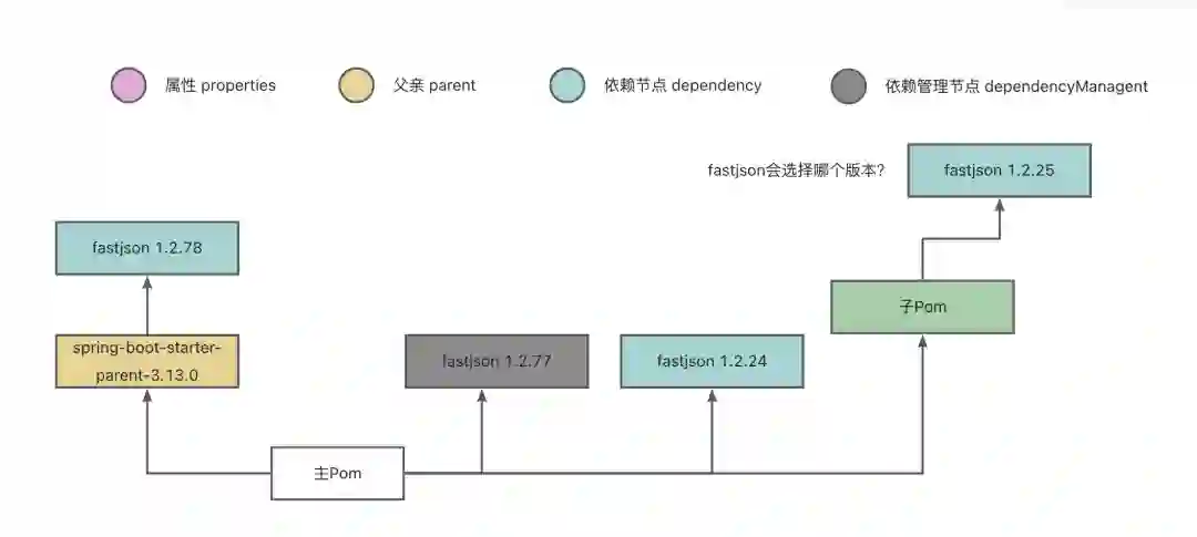 那么针对主POM这颗树,他最终会是使用哪一个fastjson呢?