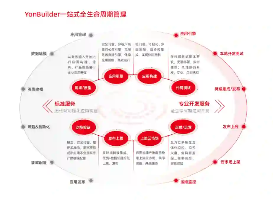 值得一提的是,YonBuilder 移动开发平台的重要组成部分 APICloud,是国内低代码开发平台的引领者与效率革命的探索者,基于对云原生、BizDevOps、混合开发等能力的持续集成,聚合了国内主流 PaaS 和 SaaS 服务,提供 1400+ 成熟功能模块,如今已经完成了从移动开发向低代码开发平台的演进,形成了坚实的生态壁垒和先进的敏捷开发能力,可以使应用的开发周期从 6 个月缩短至 2 个月。