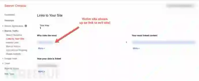 而且,谷歌搜索管理接口中关于victim.com网站的信息中,竟然能显示其与evil.com网站有指向关系: