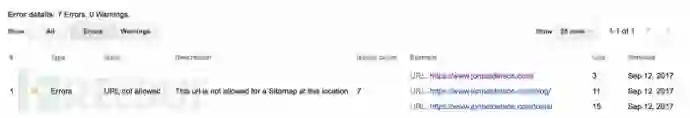 现在,你可能猜到我想做什么了,事实证明,当用谷歌网站去’ping’一个XML的sitemap文件时,如果你在其中提交的URL是一个重定向链接时,谷歌会遵从重定向跳转,甚至是跨域的网站跳转。更重要的是,它貌似还会将XML站点地图文件与进行重定向的网站域相关联,并将重定向后找到的站点地图文件,视为该网站域经过授权验证的文件,如: