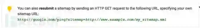 在sitemap文件的提交中,谷歌的声明似乎有些混乱,在提交站点地图的第一步,它声明可以通过ping方式提交sitemap文件,但在后续步骤中它又跳出一个如下警告: