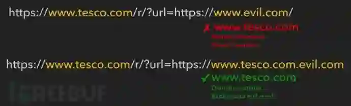 由于开放重定向应用非常普遍,不具太多安全威胁,所以谷歌没有把这种问题纳入到漏洞奖励计划。虽然很多公司都会对恶意的开放重定向进行过滤,但也可想办法绕过这种过滤措施,如下对Tesco公司网站的开放重定向绕过漏洞: