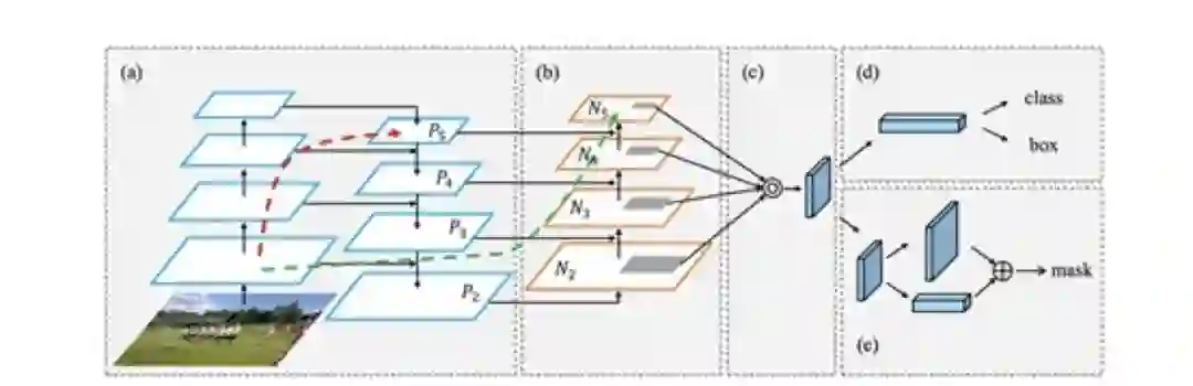 我们在综述的第二部分提到,FPN 是目标检测 Top-Down 结构的一种常见形式。这篇论文通过改进主干网络 FPN 的结构,缩短了从低层特征到高层特征之间的路径,进一步减少了定位信息流动的难度,从而同时提升了目标检测和实例分割的效果。