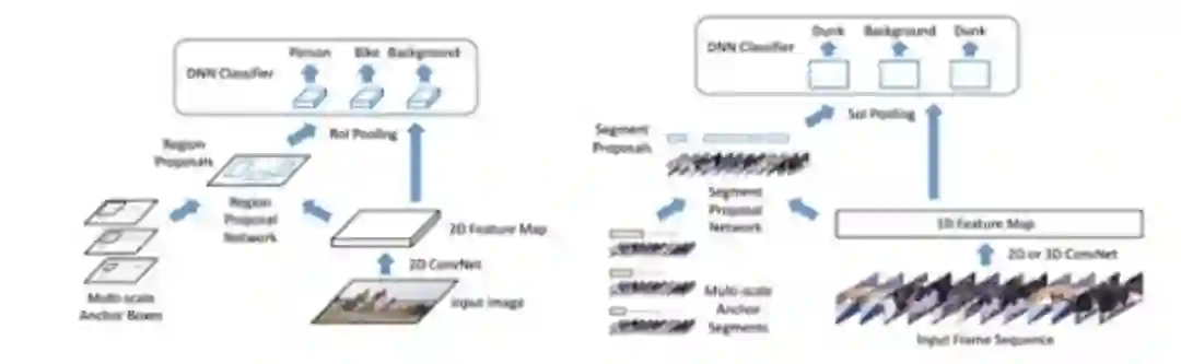 action recognition 与 temporal action Localization 之间的关系同 image classfication 与 object detection 之间的关系非常像。本文主要为了解决 Temporal Action Localization 问题,借鉴了 Faster R-CNN 的结构。