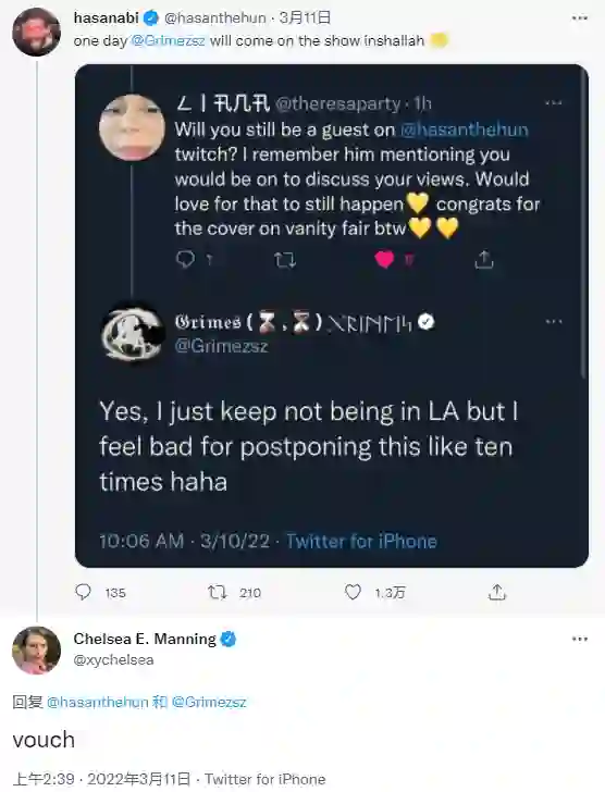 作为回应,曼宁在推特上说:"vouch"(确实)。