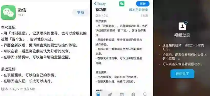 仅仅过了不到一个月的2019年1月8日,微信的7.02就将这个功能的名称修改成“视频动态”。