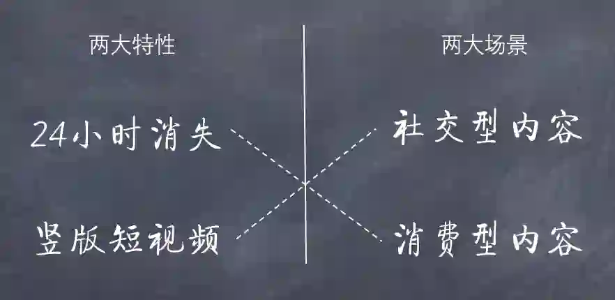 要分析同一功能在不同APP下如此泾渭分明的表现,我们需要来看一看”Story“的本质,我将这个本质总结成了两个特性和两大场景——