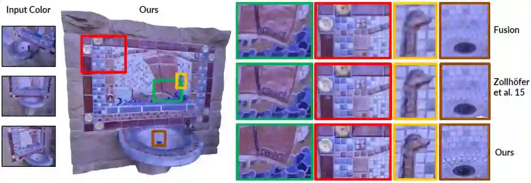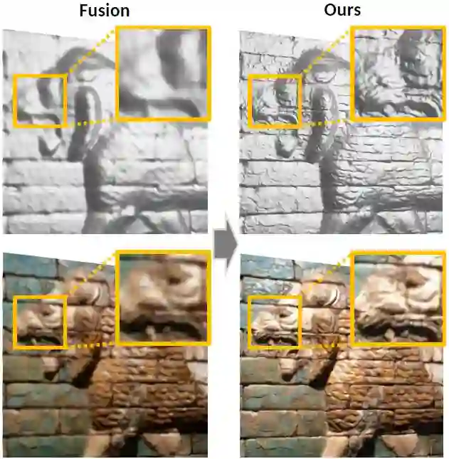 通过大量的实例和评估,我们证明了我们的方法显著地提高了重建场景几何中的细节等级,并有助于一致的表面纹理恢复。