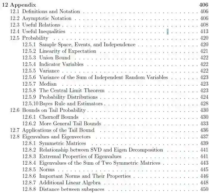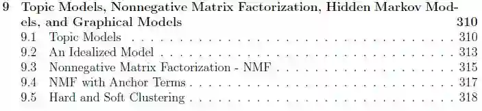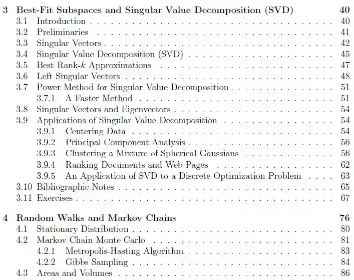 这本书主要涉及到了高维空间、SVD分解、随机游走和马尔科夫链、机器学习、大数据问题、聚类、随机图、主题模型、非负矩阵分解、隐马尔科夫模型和图模型等等当前比较热的方向,是从事数据科学研究和工作不可多得的基础书籍。