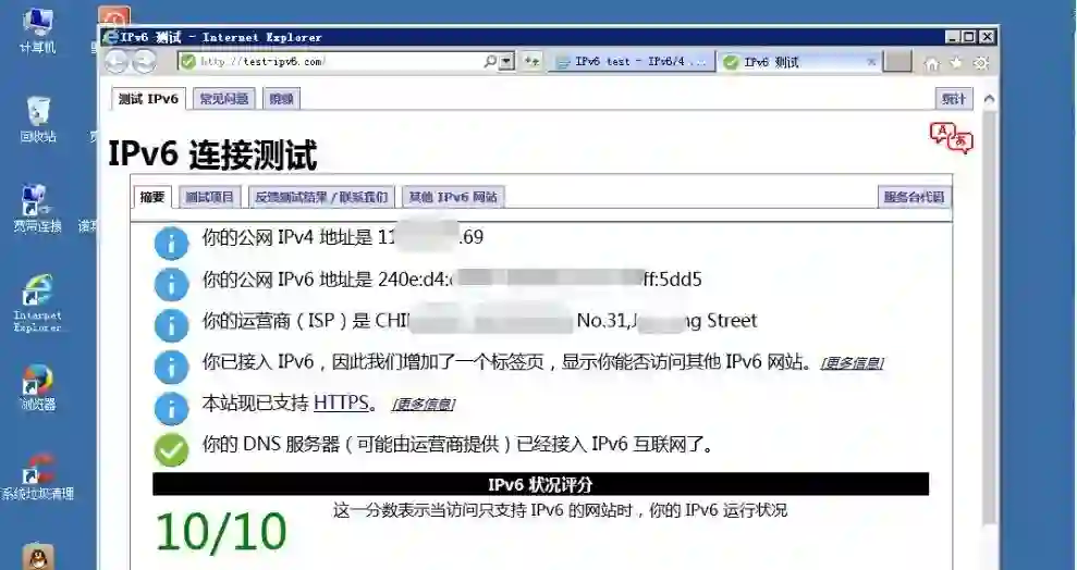 实验室通过IPv6对国内的各类主流网站进行测试,发现大部分的厂商并没有开始支持IPv6访问。少部分支持IPv6的厂商,也仅是支持主网可以通过IPv6进行访问,但网页加载的速率,以及访问链接的稳定程度就显得有点差强人意。一旦需要涉及到用户登陆或者其他用户操作的时候,就会经常出现访问失败或者登陆超时的情况。而国外支持IPv6访问的网站不论在稳定性和响应速率,还是支持用户相关的操作上,都比国内情况好很多。