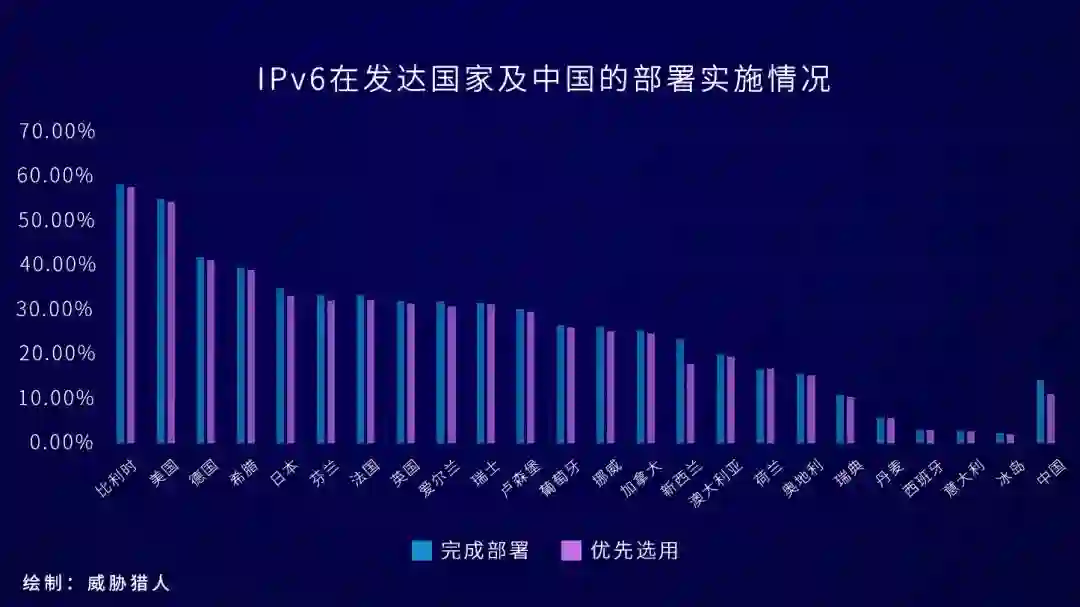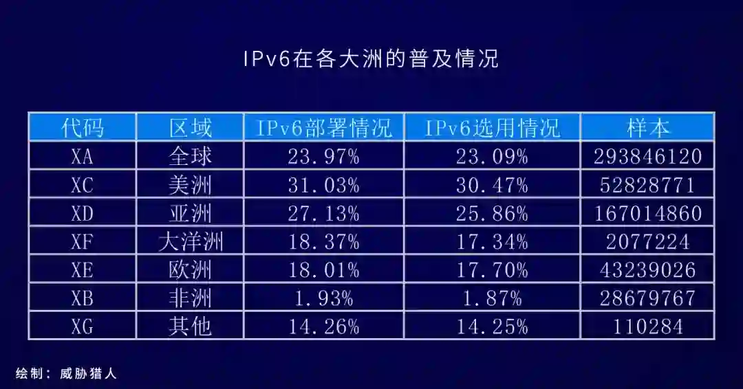 目前全球IPv6普及率达到23.97%,发达国家的IPv6普及率为25%,而全亚洲IPv6普及率达到27.13%,其中,中国的IPv6普及率达到了14.46%。以下是各大洲和发达国家以及中国的IPv6普及率统计结果: