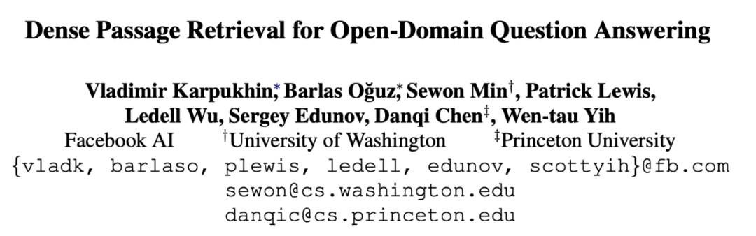 论文标题:Dense Passage Retrieval for Open-Domain Question Answering