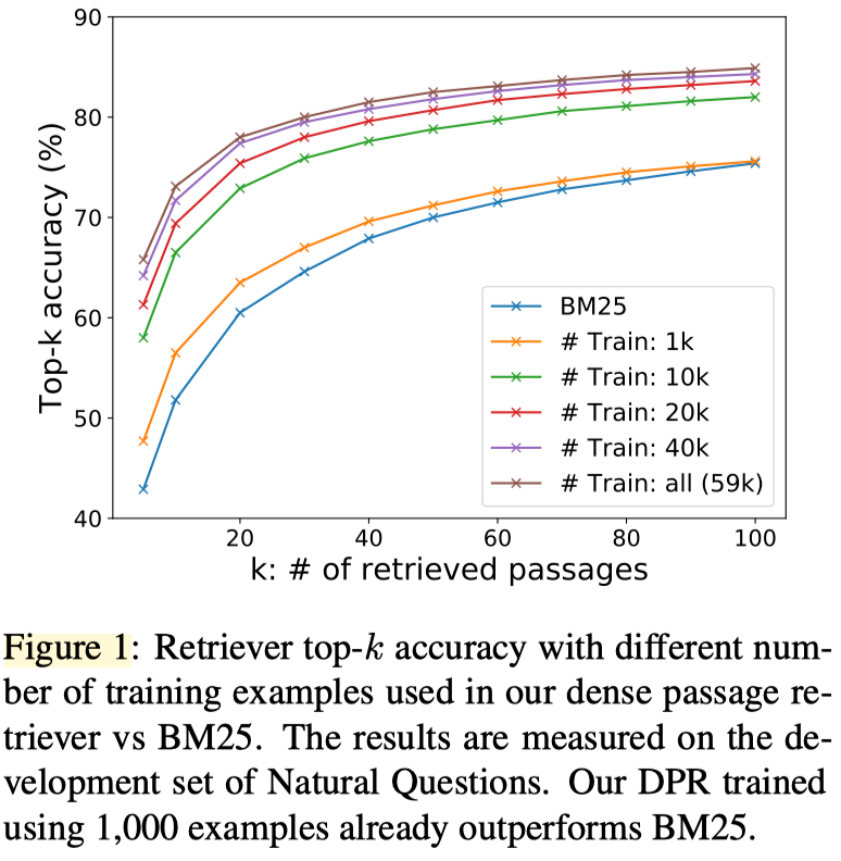 首先,本文演示了在适当的训练设置下,只需对现有 question and passage encoder 进行 fine-tuning 就足以在 top-k 检索精度方面大大超过强大的 Lucene-BM25 系统。
