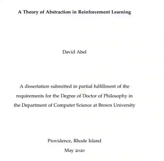 在这篇论文中,作者提出了一个强化学习中的抽象理论。具体来说,他首先提供了实现抽象过程的函数的三个要求。它们应该:1)保持接近最佳行为的表示;2 该被有效地学习和构造;3)减少规划或学习时间。