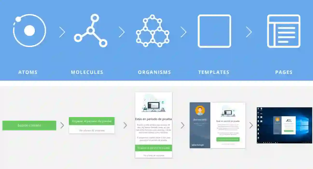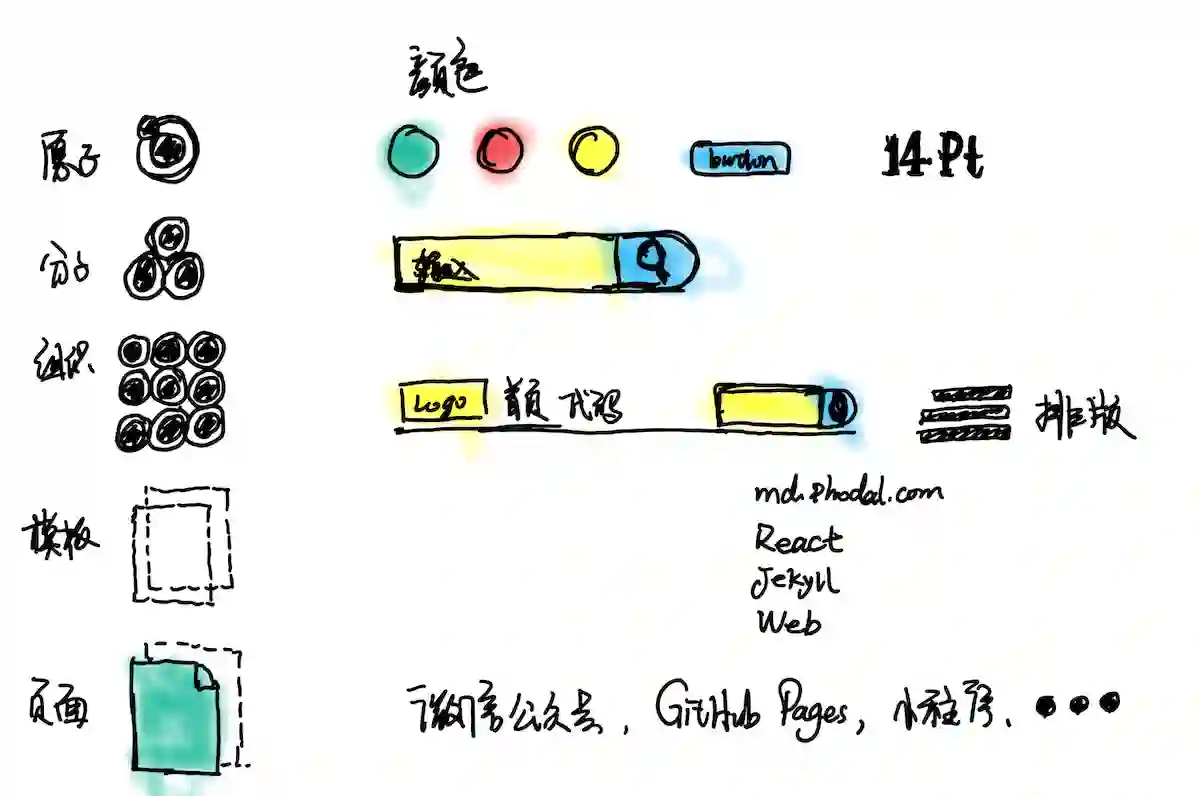 原子设计由原子、分子、生物体、模板和页面共同协作以创造出更有效的用户界面系统的一种设计方法。