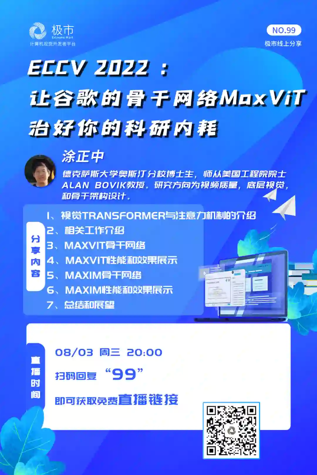 关注“极市平台”公众号,回复“99”可获取免费直播链接。