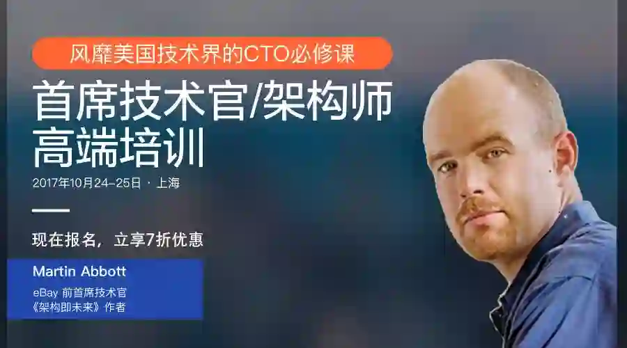 10月24-25日,Martin Abbott 还将带来《首席技术官/架构师高端培训》内地首讲!本次培训专为 CTO,技术 VP,首席架构师 量身打造。