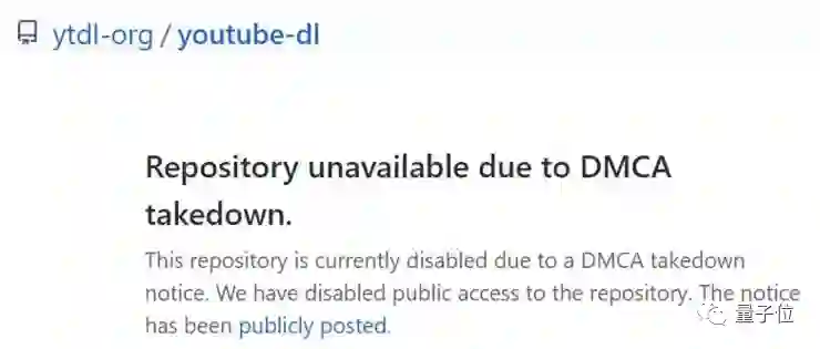 果不其然,youtube-dl遭到了投诉,并且被迫下架删除。