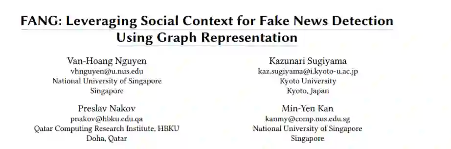 我们报告了使用FANG在假新闻检测方面的显著改进,并进一步证明了我们的模型在训练数据有限的情况下是稳健的。