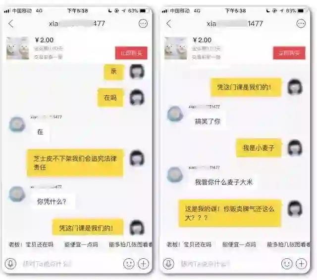 “更气人的是卖盗版视频的人气焰嚣张,理所当然。”小麦子补充道。她曾尝试直接联系盗版卖家要求下线产品,得到的回复却是“你凭什么?”