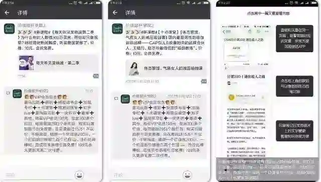 尽管淘宝、闲鱼等平台屏蔽相关关键字,不断打击盗版、下架违法盗版产品,但通过翻录付费音频、截图转存付费图文,或直接扒服务器数据等方式非法获取内容,通过规避关键词、偷换概念、通过社交工具完成交易等方式进行盗版贩售的,还是层出不穷。