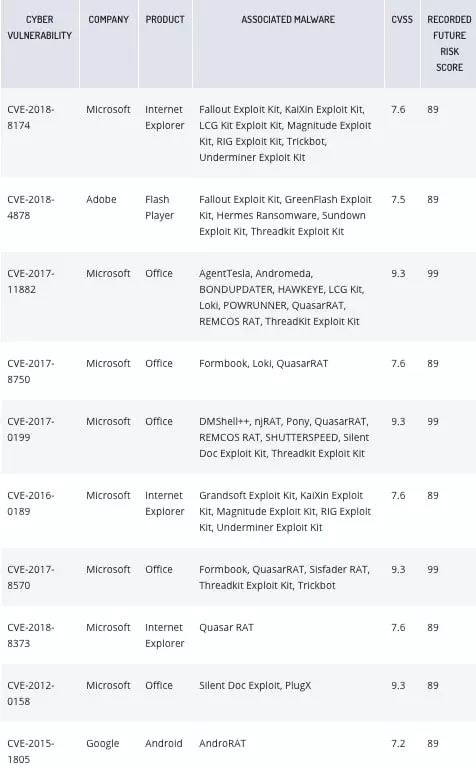 该名单由 Recorded Future 分析了大量资料后制作。在参考了深网(deep web)论坛帖子、代码仓库和暗网等资料之后,Recorded Future 将漏洞利用工具包、网络钓鱼和远程访问木马(RAT)进行的网络攻击列入了该名单的范围。