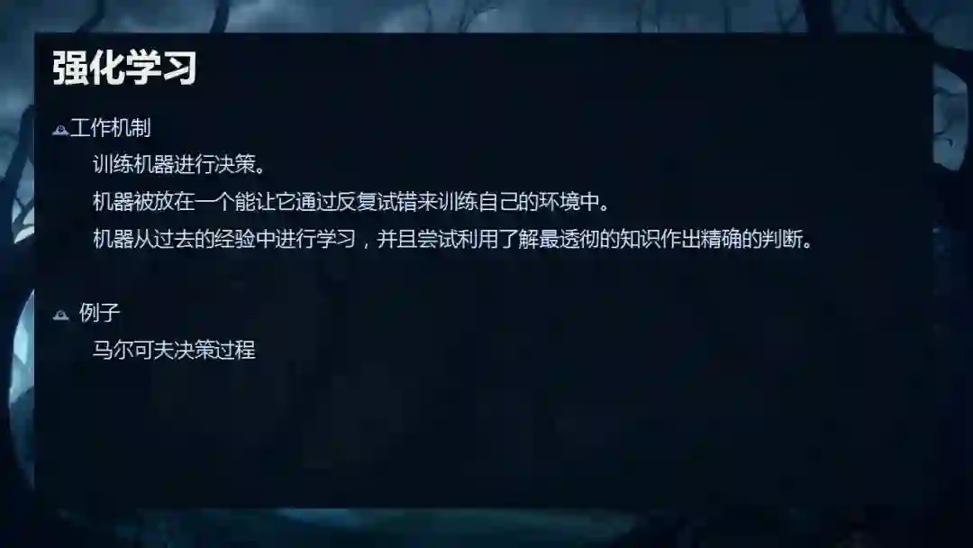 强化学习算法 (Reinforcement Algorithms):强化学习普适性强,主要基于决策进行训练,算法根据输出结果(决策)的成功或错误来训练自己,通过大量经验训练优化后的算法将能够给出较好的预测。类似有机体在环境给予的奖励或惩罚的刺激下,逐步形成对刺激的预期,产生能获得最大利益的习惯性行为。在运筹学和控制论的语境下,强化学习被称作“近似动态规划”(approximate dynamic programming,ADP)。