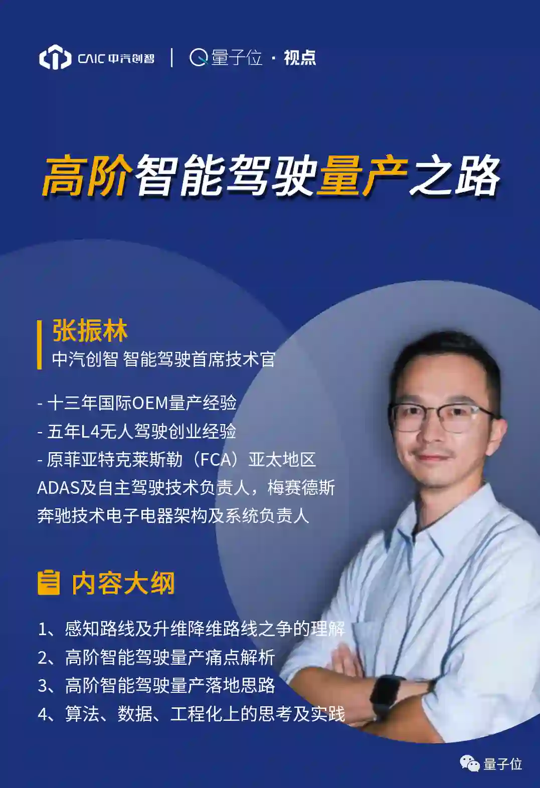 围绕高阶智能驾驶量产的路线、痛点、落地等,中汽创智智能驾驶首席技术官张振林在「量子位·视点」直播中分享了他的从业经验和观点。
