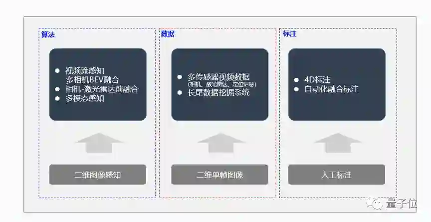在统一的自动驾驶系统框架下,核心的感知算法模块也在进行相应创新,其中值得一提的是从经典感知到下一代感知算法的迭代。经典感知常基于二维的图像感知算法,即数据端结合二维的单帧图像做相应识别,标注端更多采用人工标注方式。
