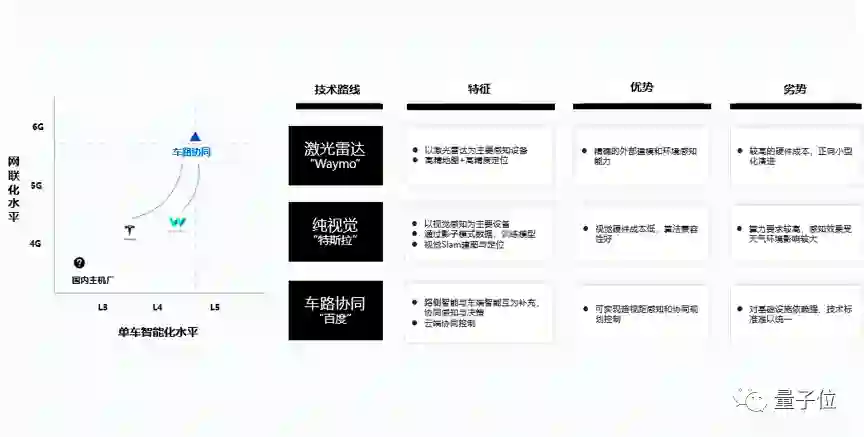 谷歌旗下的自动驾驶公司Waymo采取以激光雷达为主的发展路线,特斯拉采用其代表性的纯视觉自动驾驶方案,以百度为代表的一些国内公司试图推进以路侧智能与车端智能互为补充的车路协同技术路线。我们认为无论是激光派还是视觉派,无论是单车智能还是车路协同,从技术本身而言,它们没有矛盾也不冲突。