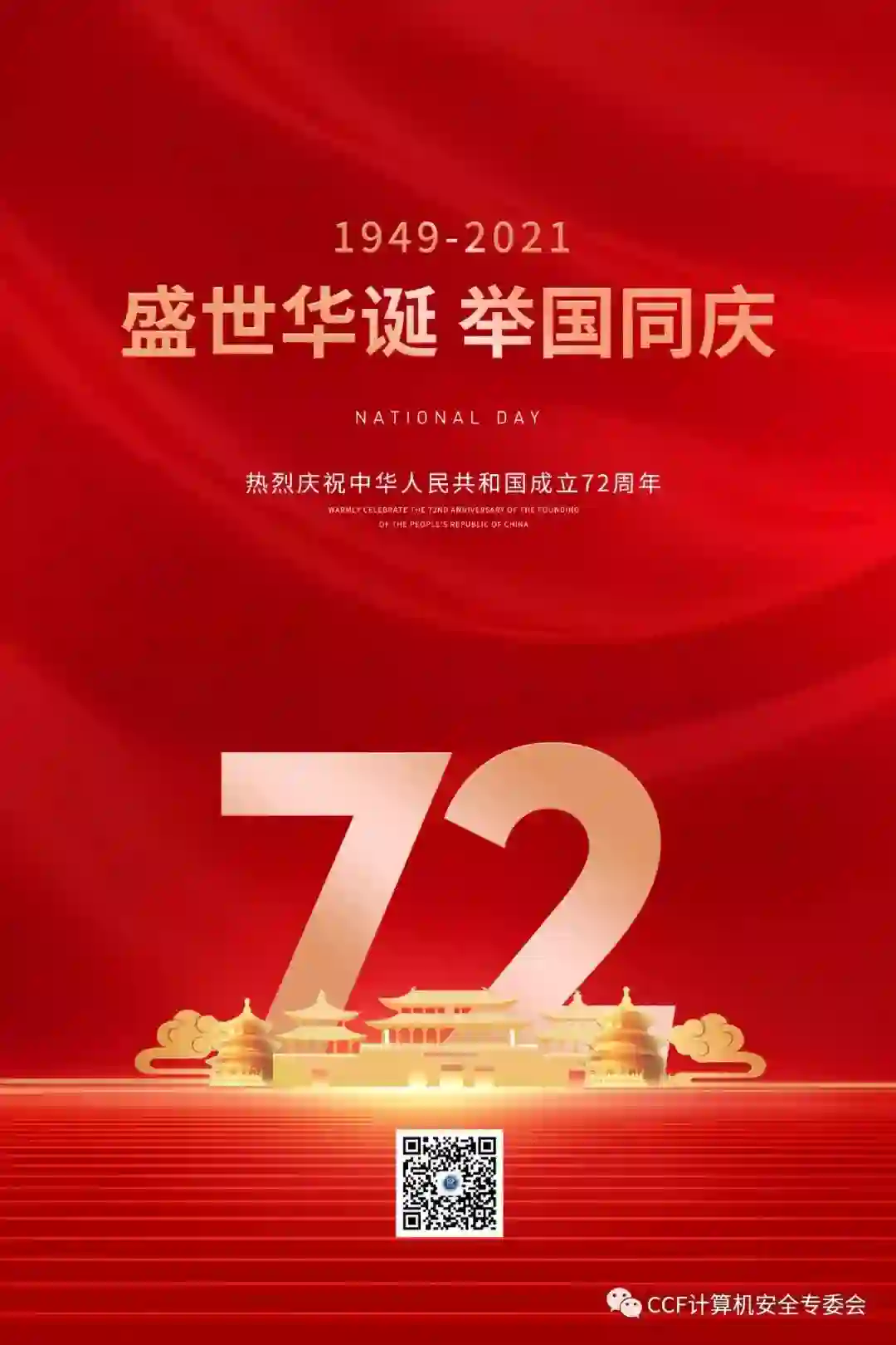 CCF计算机安全专委会热烈庆祝中华人民共和国成立72周年!