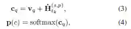 中的未出现过的实体的值设为无限小的值(如 - 10000),然后通过简单的加和,将未出现过的实体概率值降到无限小。通过一层 softmax,即可将未出现过的实体概率无限逼近与 0,得到历史出现过的所有实体的概率值 p(c):