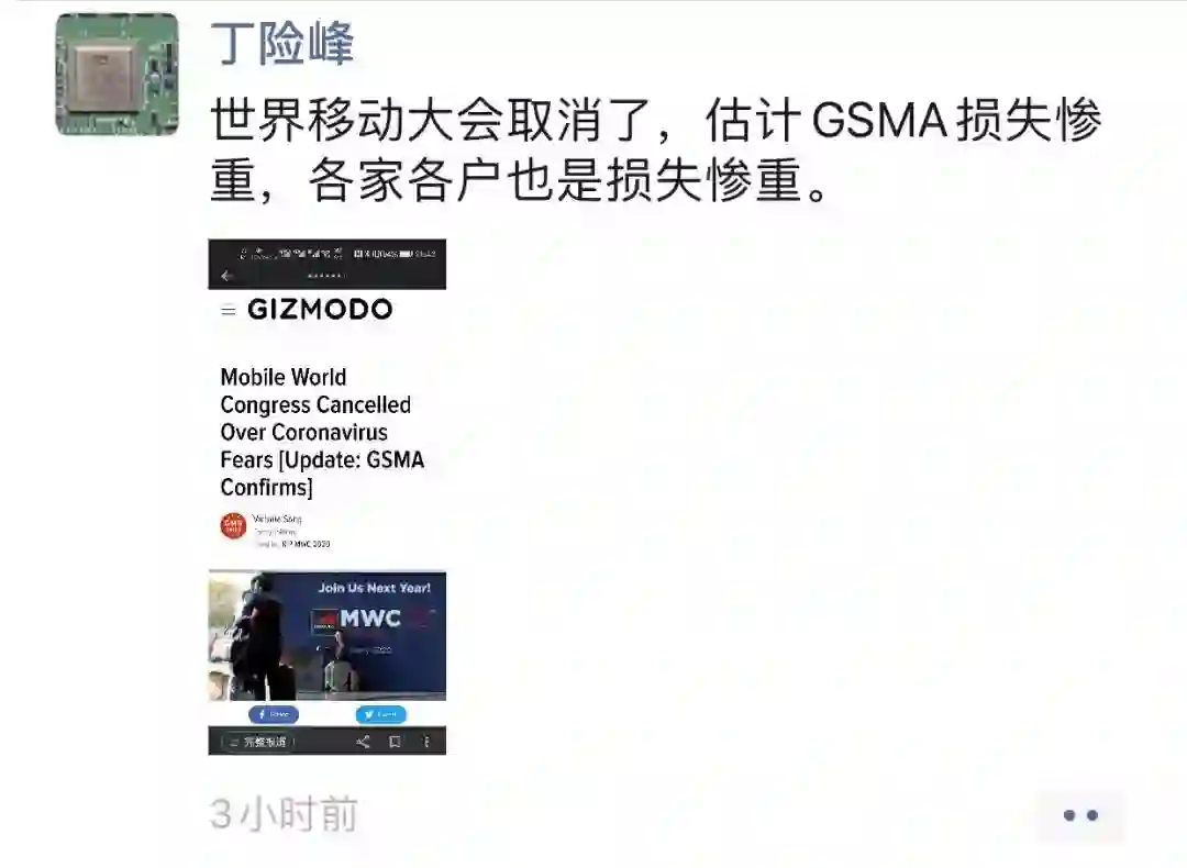 得知这一消息,阿里云首席科学家丁险峰在朋友圈感叹:“世界移动大会取消了,估计GSMA损失惨重,各家各户也是损失惨重。”