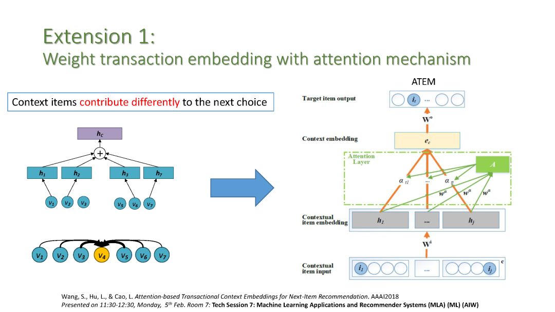Wang, S., Hu, L., & Cao, L. (2018, February). Attention-based Transactional Context Embeddings for Next-Item Recommendation. AAAI2018