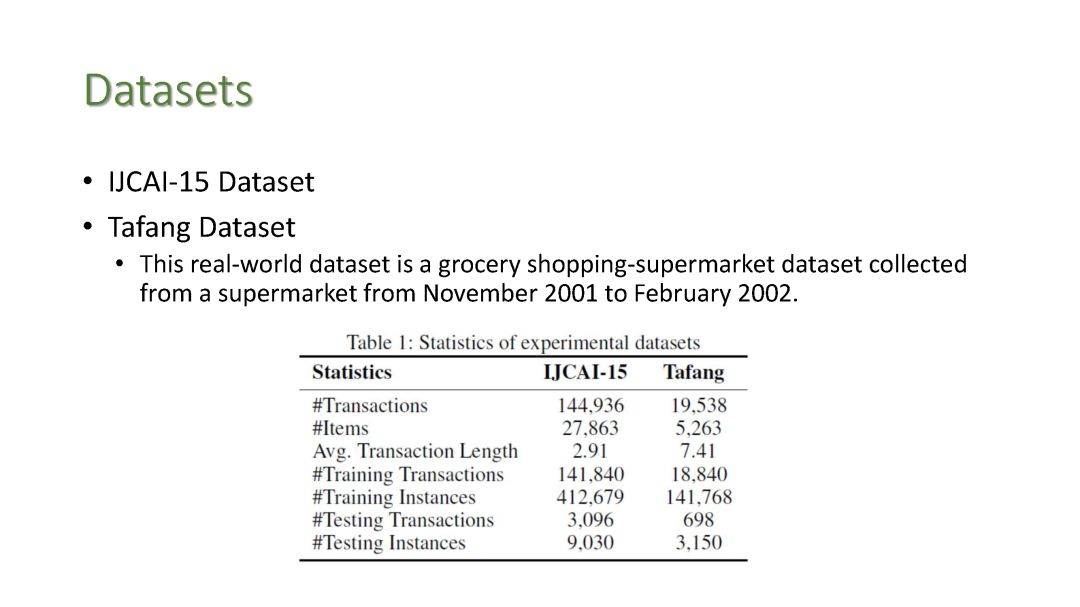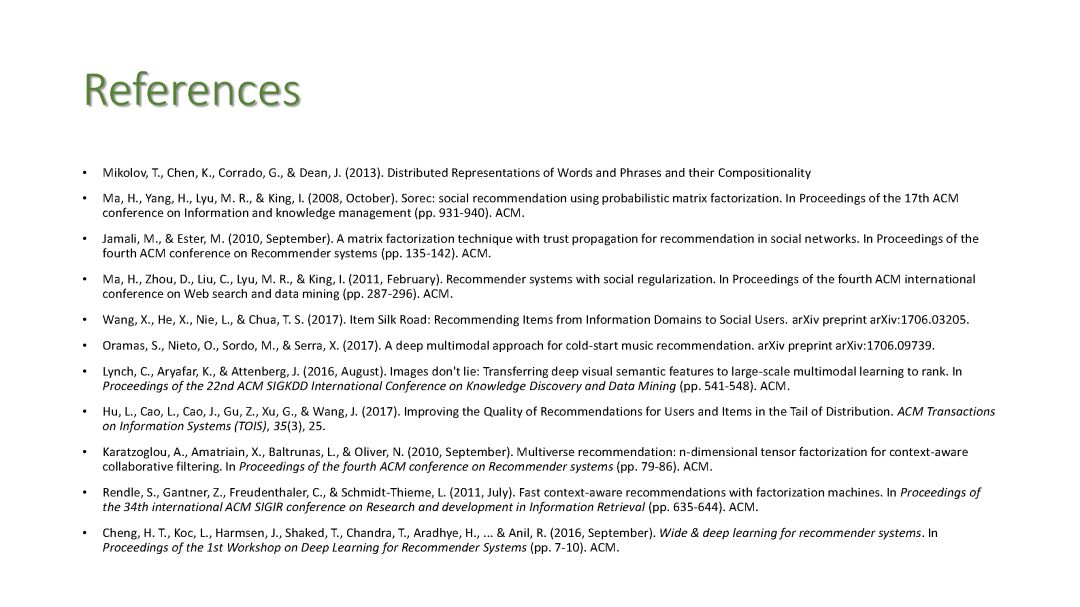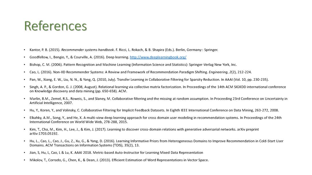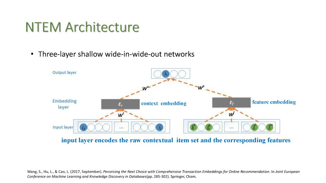 Wang, S., Hu, L., & Cao, L. (2017, September). Perceiving the Next Choice with Comprehensive Transaction Embeddings for Online Recommendation. In Joint European Conference on Machine Learning and Knowledge Discovery in Databases(pp. 285-302). Springer, Cham.
