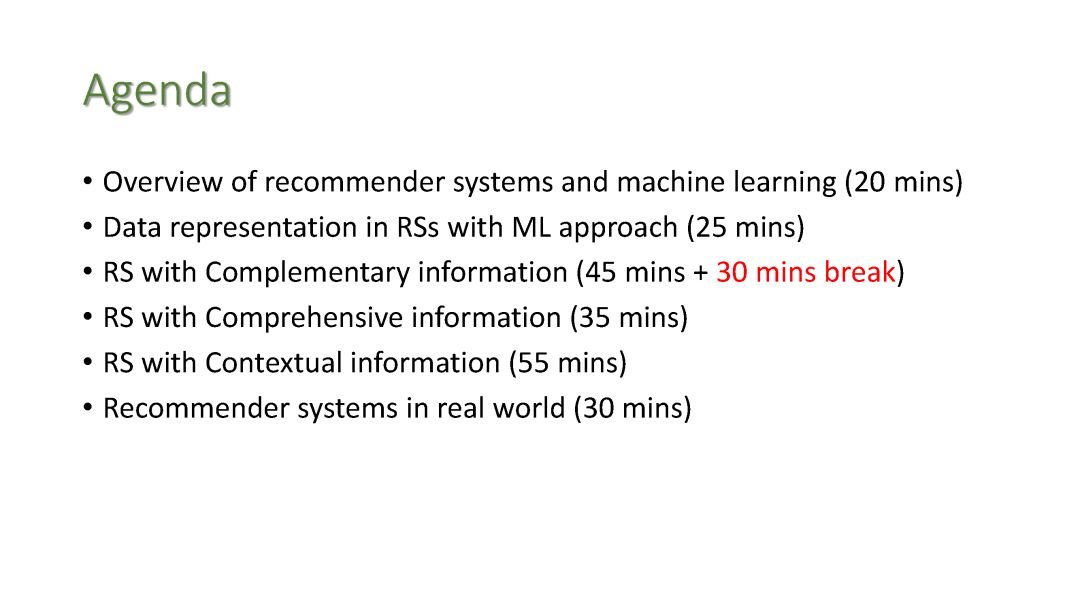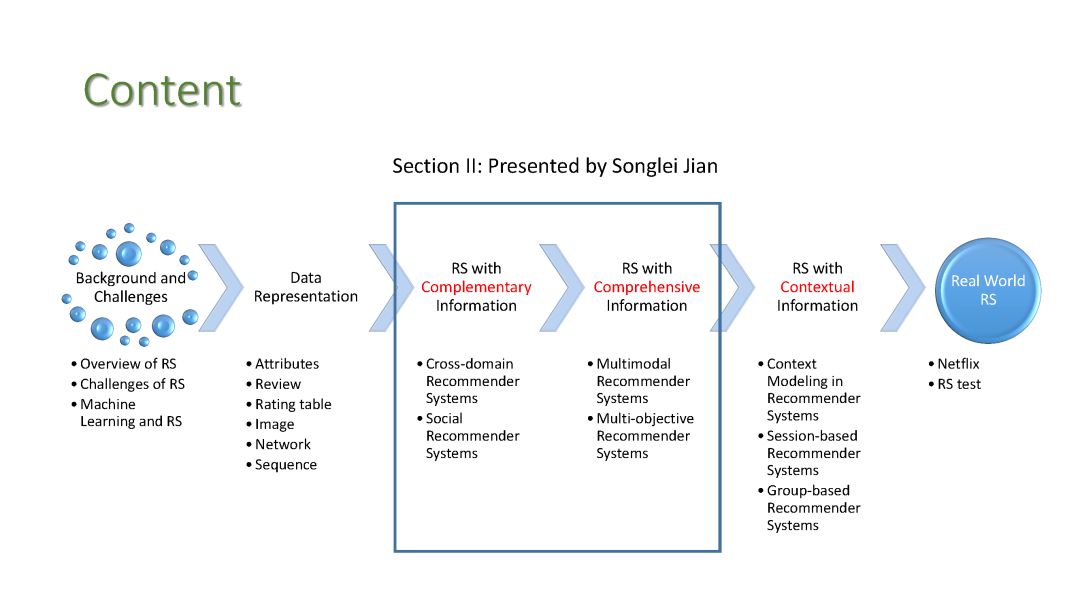 本教程的目标是让学术界和实践人员能够全面了解如何应用最前沿的机器学习方法,以便在各种异构数据和复杂场景中构建新一代推荐系统。 在本教程中,我们将介绍最前沿的机器学习技术及其应用,以构建智能推荐系统。 在本教程之后,读者可以掌握:
