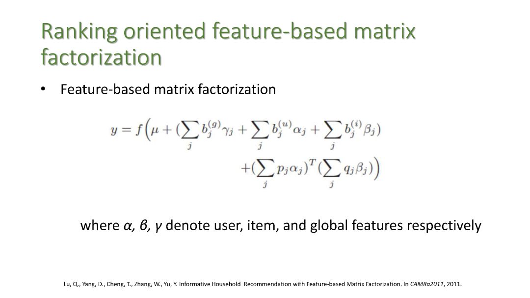 Lu, Q., Yang, D., Chen, T., Zhang, W., & Yu, Y. (2011, October). Informative household recommendation with feature-based matrix factorization. In proceedings of the 2nd Challenge on Context-Aware Movie Recommendation (pp. 15-22). ACM.