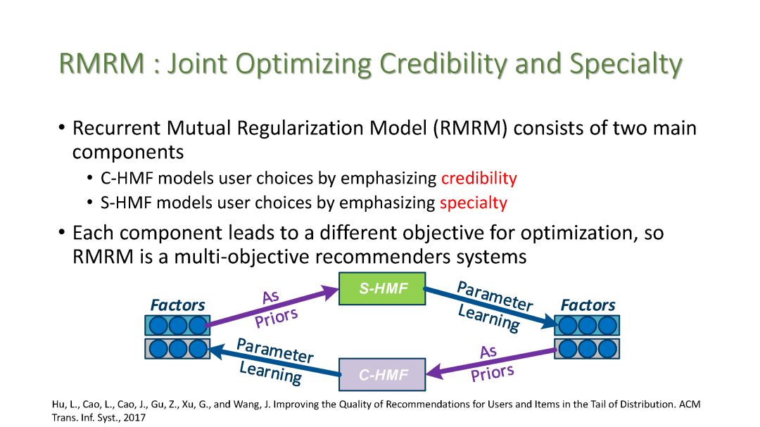 Hu, L., Cao, L., Cao, J., Gu, Z., Xu, G., & Wang, J. (2017). Improving the Quality of Recommendations for Users and Items in the Tail of Distribution. ACM Transactions on Information Systems (TOIS), 35(3), 25.