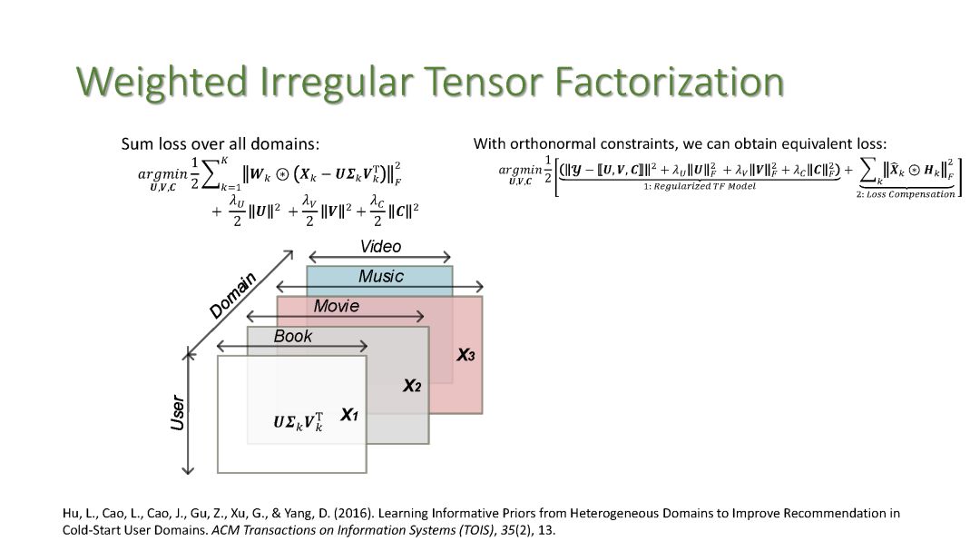 Hu, L., Cao, L., Cao, J., Gu, Z., Xu, G., & Yang, D. (2016). Learning Informative Priors from Heterogeneous Domains to Improve Recommendation in Cold-Start User Domains. ACM Transactions on Information Systems (TOIS), 35(2), 13.