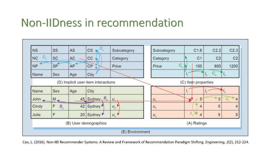 Cao, L. (2016). Non-IID Recommender Systems: A Review and Framework of Recommendation Paradigm Shifting. Engineering, 2(2), 212-224.