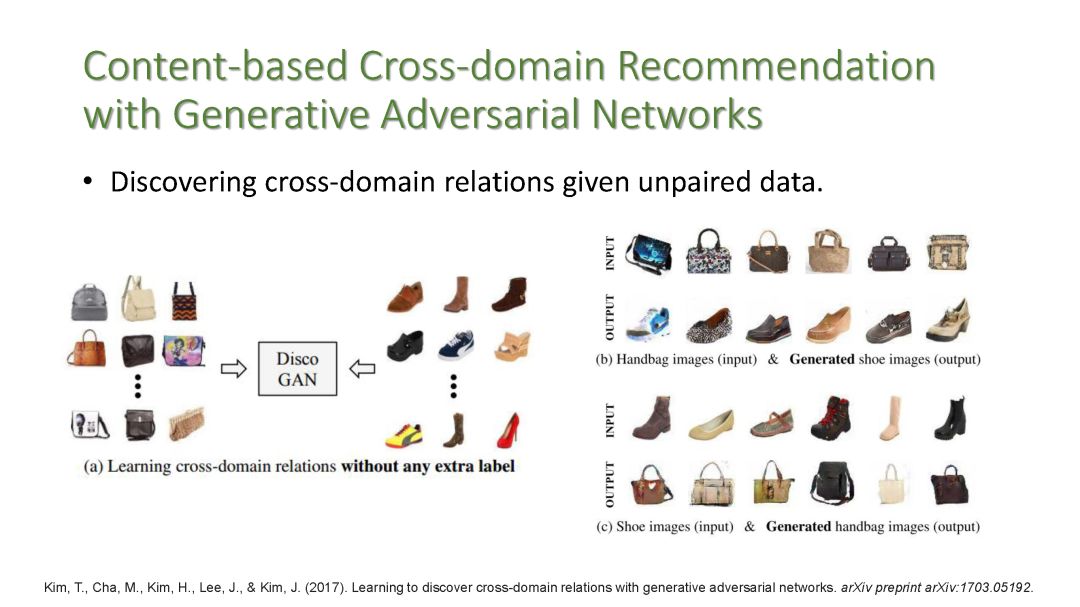 Kim, T., Cha, M., Kim, H., Lee, J., & Kim, J. (2017). Learning to discover cross-domain relations with generative adversarial networks. arXiv preprint arXiv:1703.05192.
