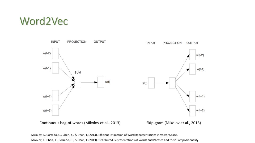 Mikolov, T., Chen, K., Corrado, G., & Dean, J. (2013). Distributed Representations of Words and Phrases and their Compositionality