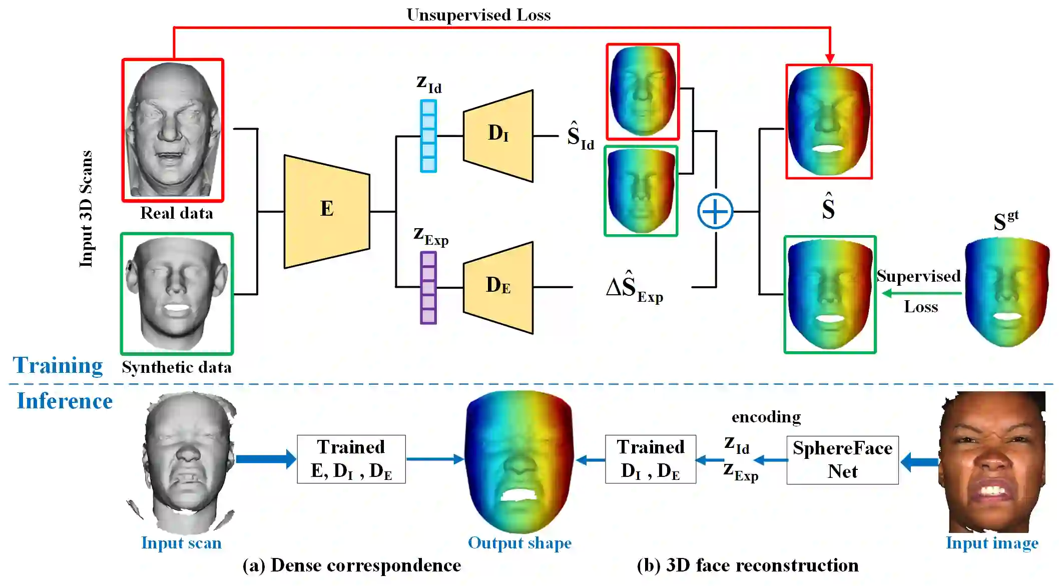 翻译:传统的三维模型从不超过300个单一数据库的培训扫描中,从不超过300个单一数据库的线性子空间中学习面部的潜在表现。从不同的三维数据库中建立大型面部模型的主要障碍在于原始扫描之间缺乏密集的通信。为解决这些问题,本文件提出一个创新框架,共同从多样化的一组原始三维扫描数据库中学习非线性面部模型,并在扫描中建立密集的点对点通信。具体地说,通过将输入的原始扫描作为无组织点云处理,我们探索使用点网结构将点云转换为身份和表达特征显示,使解码网络从中恢复其三维面形。此外,我们提议了一种不要求扫描需要通信标签的薄弱监督学习方法。我们展示了我们拟议方法在形状和表达上的高度密集通信和代表力,及其对单一图像3D面重建的贡献。