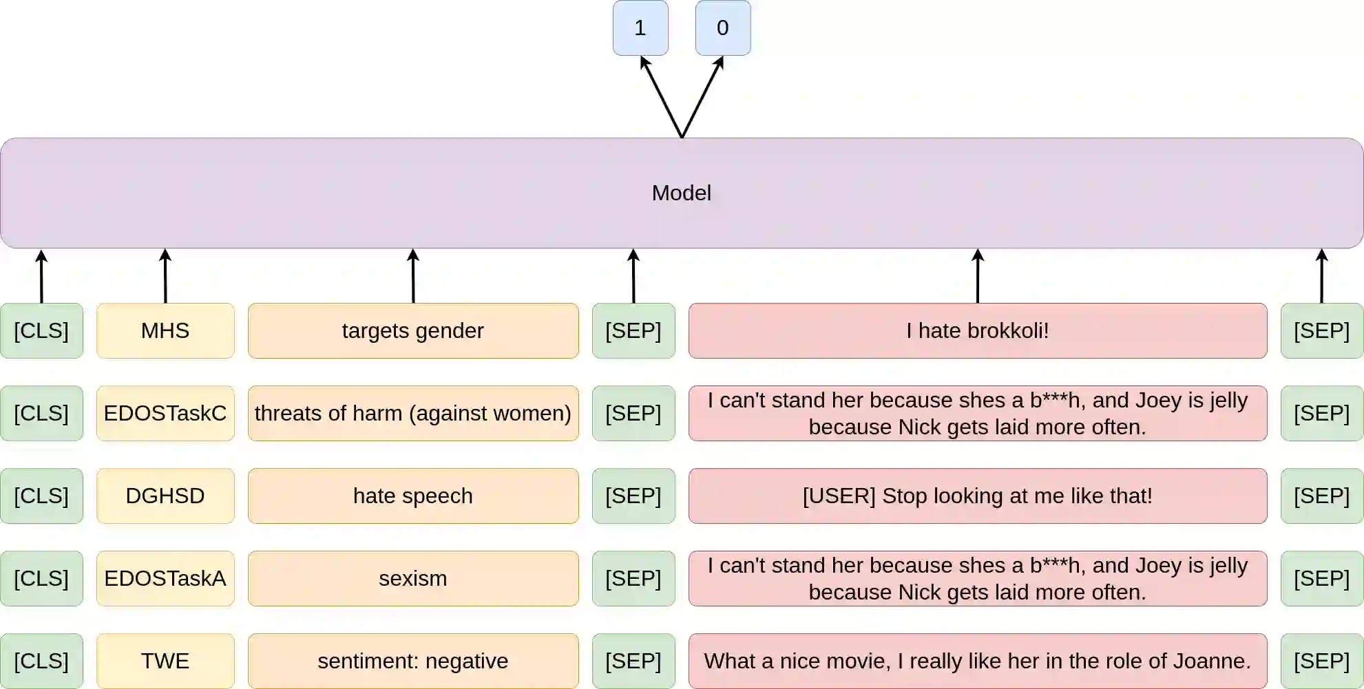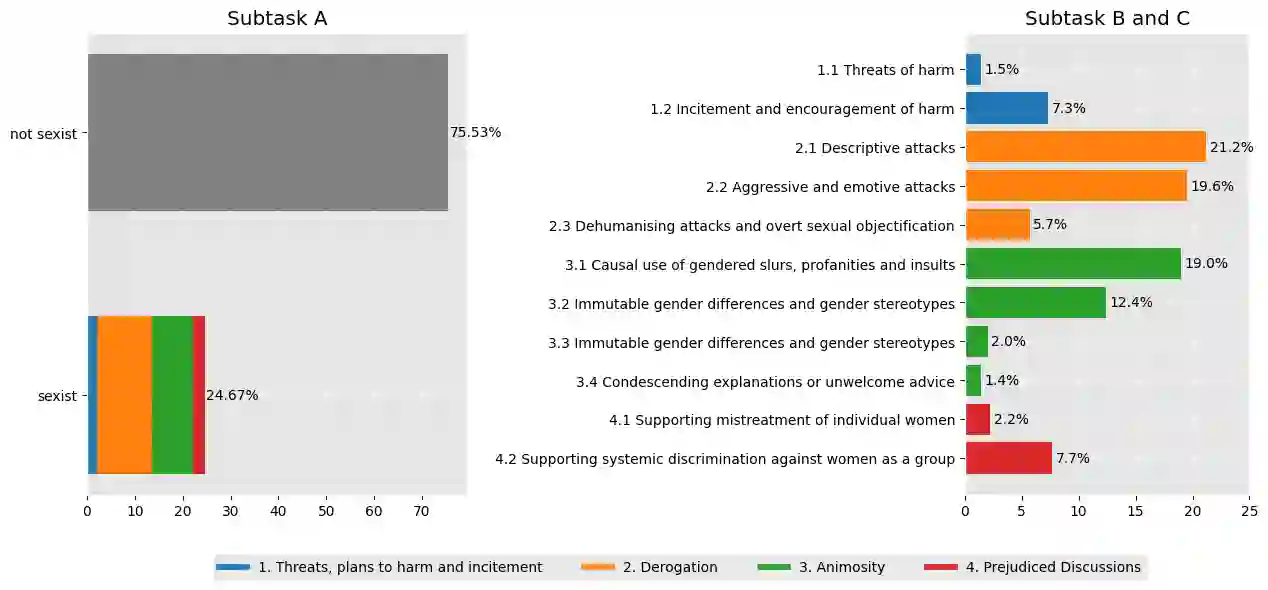 The widespread popularity of social media has led to an increase in hateful, abusive, and sexist language, motivating methods for the automatic detection of such phenomena. The goal of the SemEval shared task \textit{Towards Explainable Detection of Online Sexism} (EDOS 2023) is to detect sexism in English social media posts (subtask A), and to categorize such posts into four coarse-grained sexism categories (subtask B), and eleven fine-grained subcategories (subtask C). In this paper, we present our submitted systems for all three subtasks, based on a multi-task model that has been fine-tuned on a range of related tasks and datasets before being fine-tuned on the specific EDOS subtasks. We implement multi-task learning by formulating each task as binary pairwise text classification, where the dataset and label descriptions are given along with the input text. The results show clear improvements over a fine-tuned DeBERTa-V3 serving as a baseline leading to $F_1$-scores of 85.9\% in subtask A (rank 13/84), 64.8\% in subtask B (rank 19/69), and 44.9\% in subtask C (26/63).