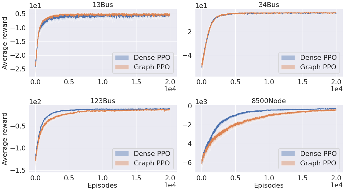 翻译:沃尔特瓦尔控制(VVC)是通过控制电源系统中的驱动器在健康制度内操作动力分配系统的问题; 现有的工程大多采用代表动力系统的常规常规常规(用树本图绘制)作为载体来训练深强化学习(RL)政策; 我们提议了一个框架,将RL与图形神经网络结合起来,并研究VVC设置中基于图形的政策的好处和局限性; 我们的结果表明,以图形为基础的政策与矢量代表对应方相比,在同样程度上会以同样的方式获得回报,但速度却较慢。 我们进一步分析观测和行动的影响:在观测结束时,我们检查基于图形的政策对动力系统中两个典型的数据获取错误(即传感器通信故障和测量不匹配)的稳健性。 在行动结束时,我们表明,以图表为基础的政策对系统有不同的影响,因此,使用动力系统表层学引出的图形表示方式可能不是最佳选择。 最后,我们进行一项案例研究,以证明选择读出功能结构和图形增强能力可以进一步改善培训的绩效和稳健性。